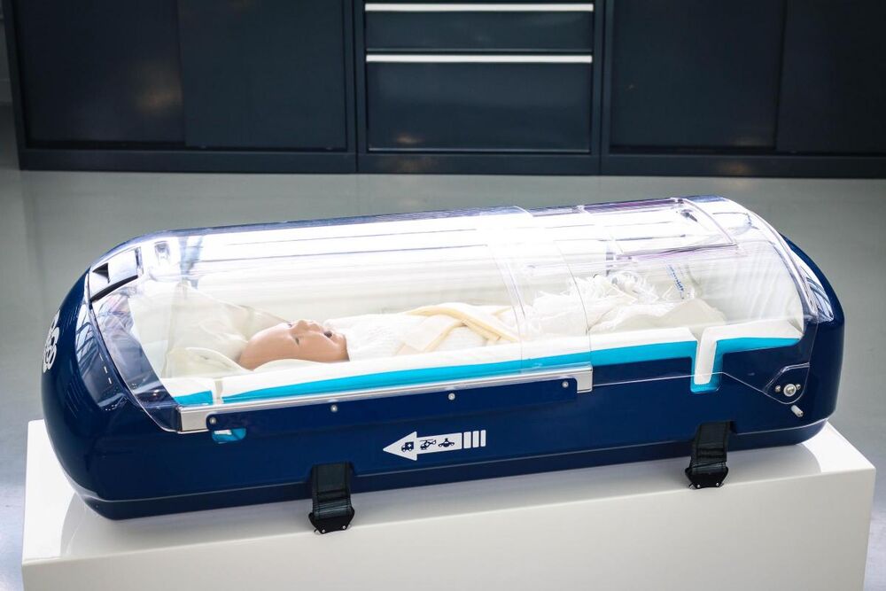 U pitanju je Bejbipod 20, glatka lagana kutija sa klizećim providnim poklopcem i veoma mekano obloženom unutrašnjošću. Osmišljen je za transport teško bolesnih beba ličnim vozilima, kolima hitne pomoći ili helikopterom.