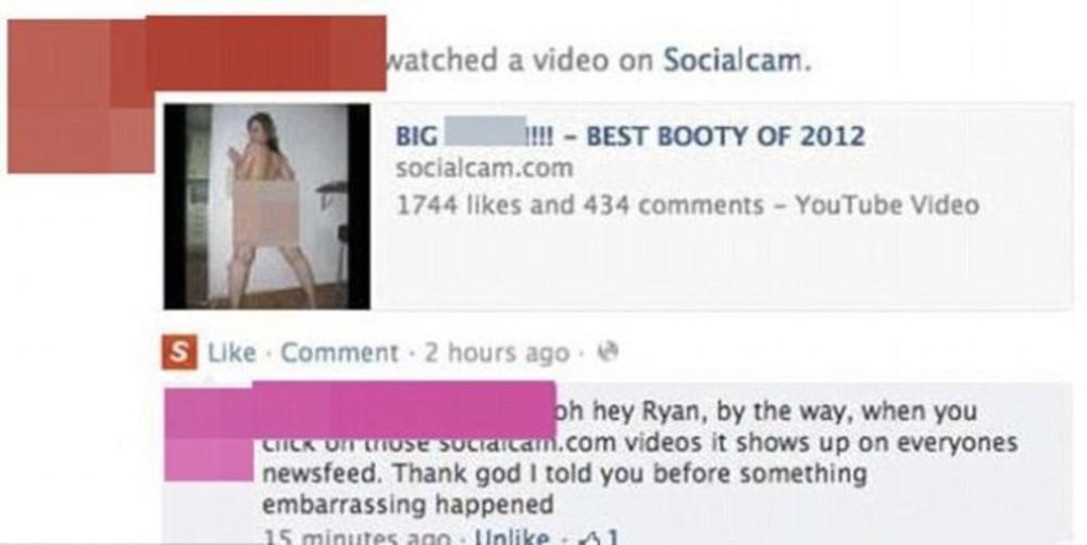 - Hej, Ryane, kad klikneš na ta socialcam.com videa to se pojavi na svačijem newsfedu. Hvala bogu da sam ti rekao pre nego što se dogodilo nešto neugodno - našalio se prijatelj s jednim od njih.