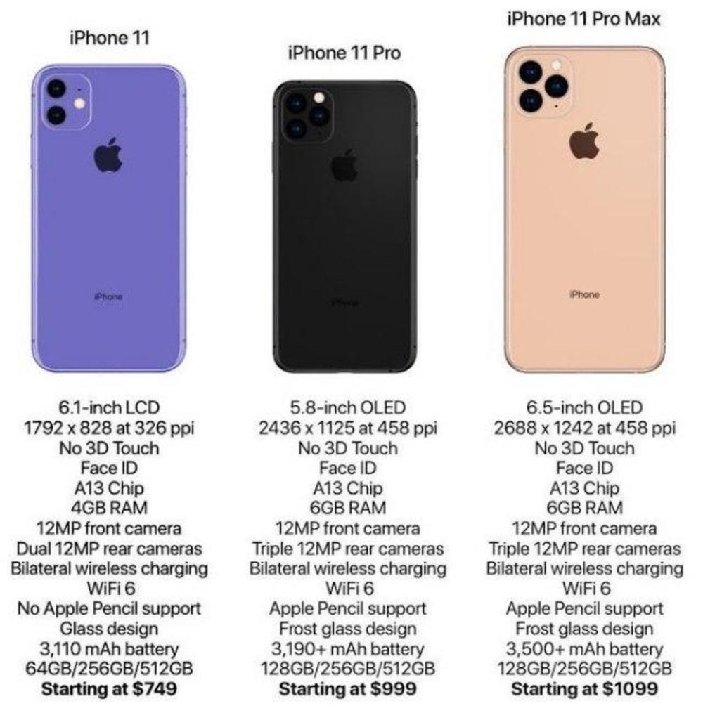 Sva tri modela pokreće isti A13 čip, ali se razlikuju po količini RAM memorije kao i prema kapacitetu baterije koja ih napaja.