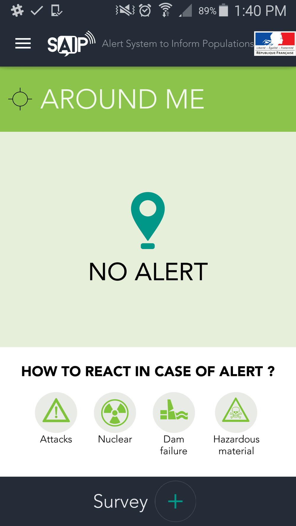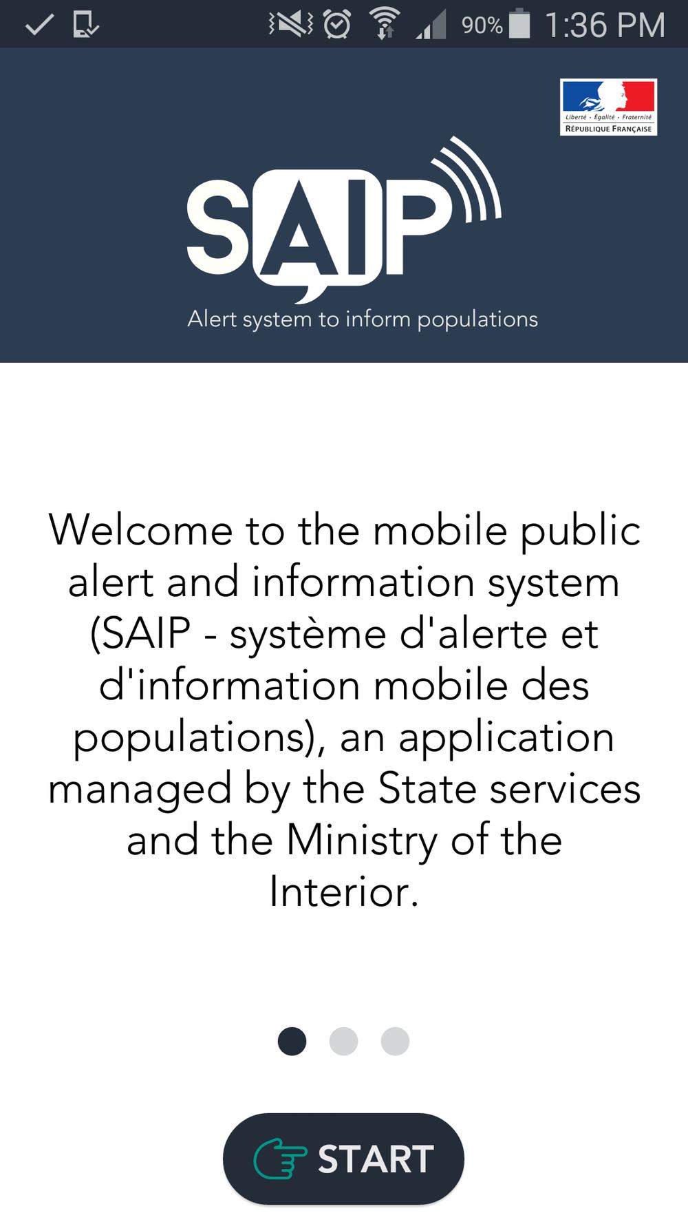 Ova aplikacija zove se SAIP (sistem za alarmiranje i informisanje populacije) i posebno je apelovano na sve posetioce predstojećeg evropskog prvensta u fudbalu koje se održava u Francuskoj da instaliraju ovu aplikaciju. Nova frka u Francuskoj: Na ulicama protesti i haos! (VIDEO) Njegova upotreba bi trebalo da je svima prijemčiva, aplikacija je napravljena tako da svako može brzo da se snađe na svom telefonu i upozori na opasnost. Ovako bi to trebalo da izgleda: