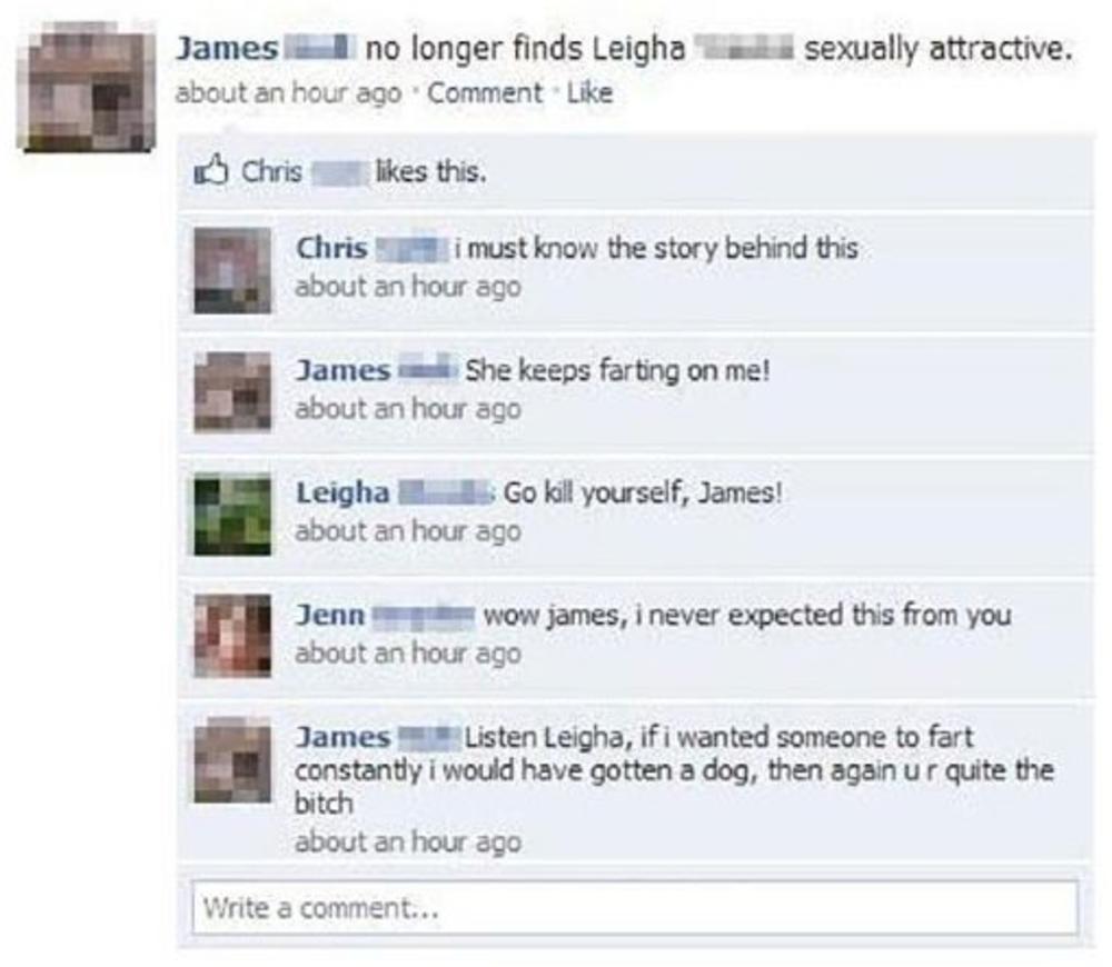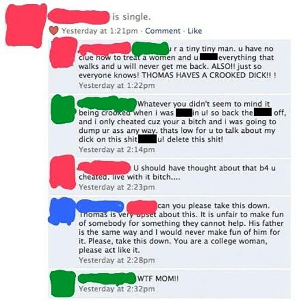 4. Ovaj par je sav svoj prljavi veš izbacio na Fejs! Ona je njemu rekla da pokvareni prevarant, pa je pomenula i njegov... khm... polni organ. A onda se u raspravu uključila i njegova keva, i stvari su postale vrlo čudne!