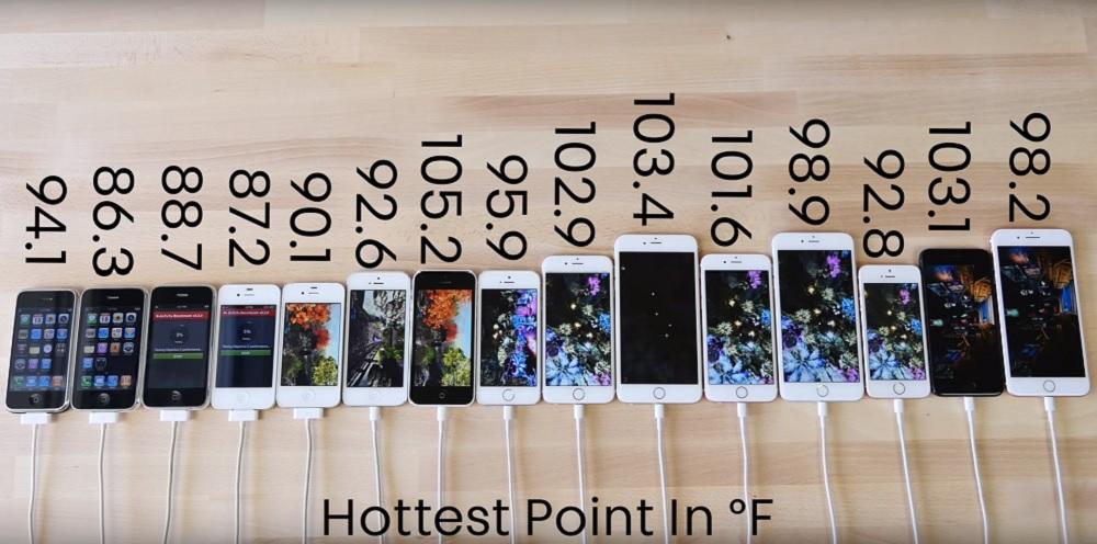 Kako bi se uradio on je rađen dok su se telefoni u isto vreme punili, sa pokrenutim benchmarkovima. Očekivano, novi modeli se nisu zagrejali i zapravo su veoma "cool". Ipak, noviji Plus modeli se nešto više zagrevaju.