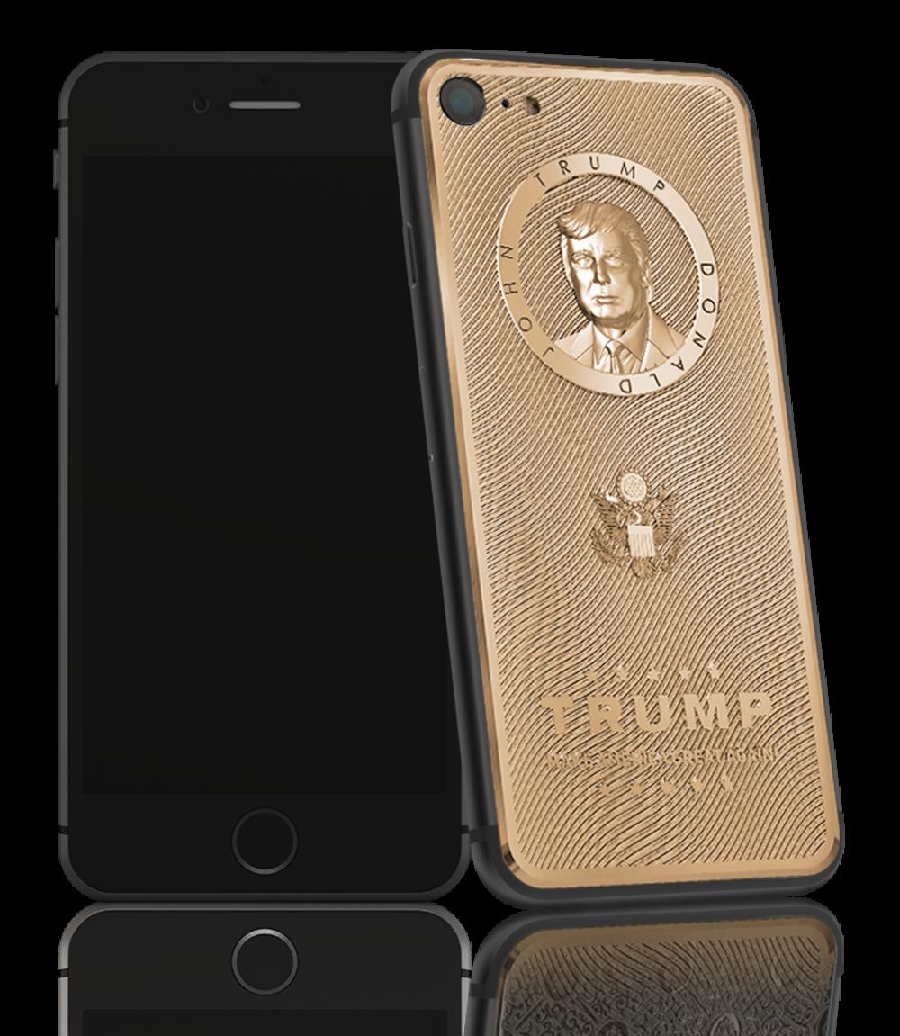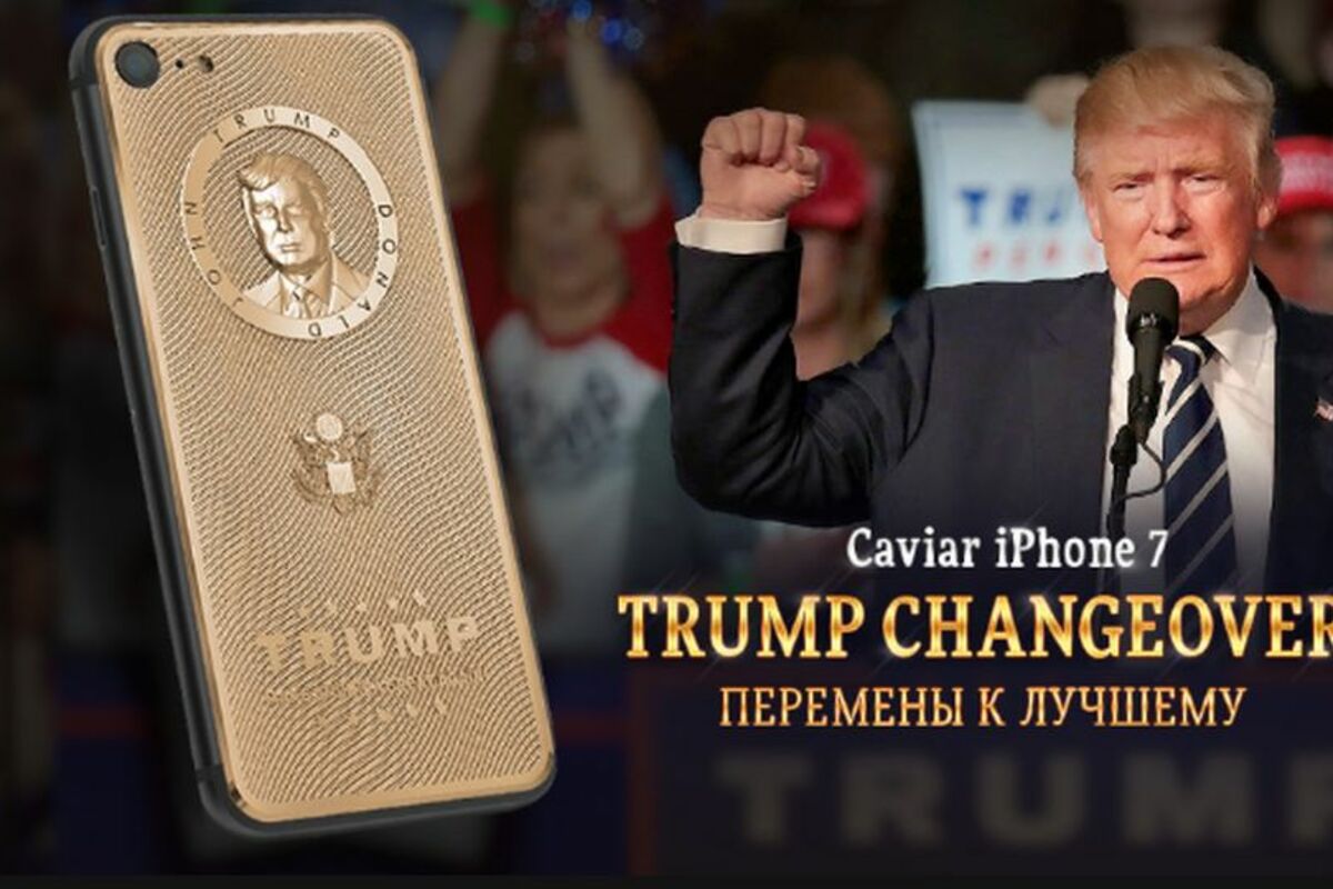 Ajfon 7 "ukrašen" likom Donalda Trampa u zlatu delo je ruske kompanije Caviar, koja time obeležava Trampovu pobedu. Pozlaćeni smartfon na poleđini ima Trampov portret u zlatu sa dodatnim zlatnim detaljima i logoom njegove kampanje.