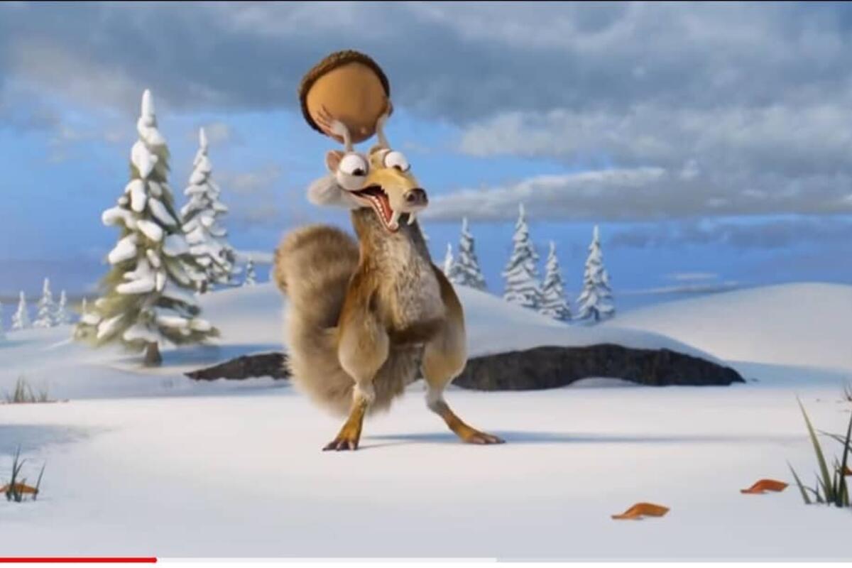 Svim ljubiteljima filmova "Ledeno doba" dobro je poznato da se mužjak veverice Skrat svim silama trudio da dođe do žira. On je napokon uspeo u svom naumu, i to u videu koji je objavila bivša filmska kompanija Blu skaj studios.