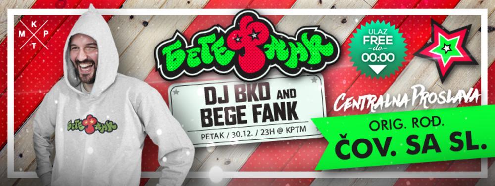 Opštenarodna proslava orignalnog rođendana BeGe Fanka i univerzalna proslava svega što može da se slavi! DJ BKO i BeGe Fank ga kidaju jako u KPTM-u 30. 12. od 23:00h