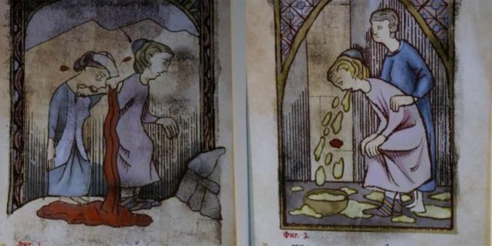 Na jednoj se vidi osoba koja drugu osobu grize za ruku, a na drugoj kako neko povraća.