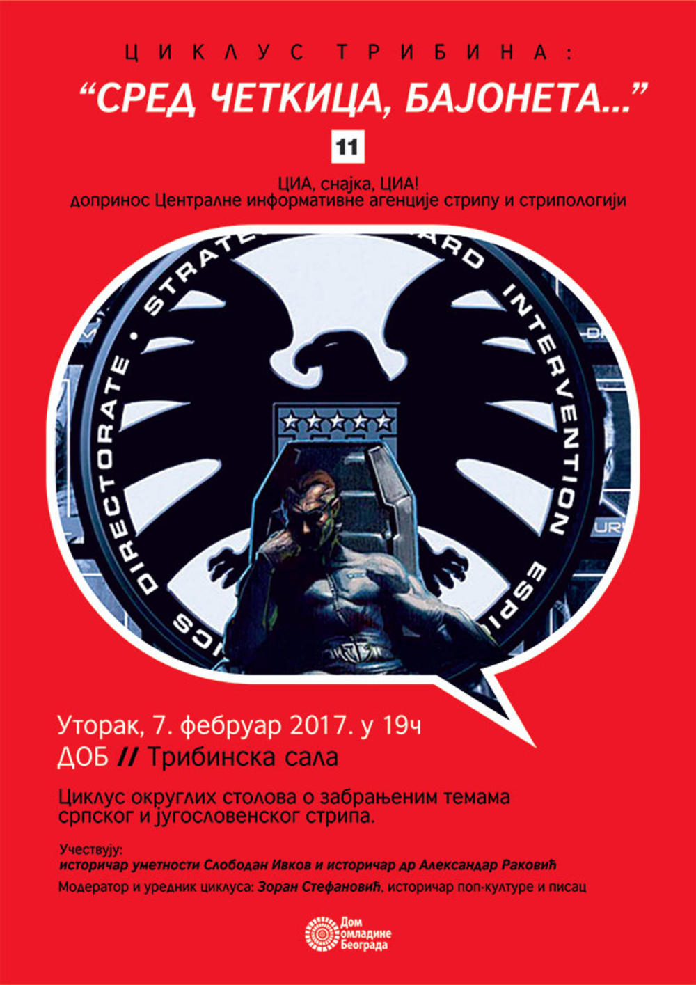 Ovo je prva tribina u jugoslovenskim zemljama na temu stripa i CIA, uporedna istorija američke i jugoslovenske pop kulture u malom.