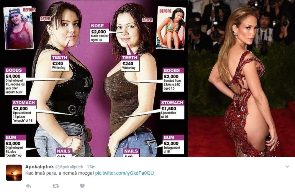 Istina je da na svetu postoji vrlo malo pozadina koje se mogu uporediti sa legendarnom guzom latino senzacije, ali ove tinejdžerke su želele da joj se bar približe. Obe su želele telo Lopezove pa su stavile implante u grudi, odradile liposukciju i popunile dupeta. One su svoje prve operacije odradile kada su imale samo 14 i 15 godine, dok se njihovo telo još nije u potpunosti ni razvilo. Ipak, sada su zadovoljne svojim izgledom, a i treba da budu s obzirom na to da je njihova majka pljunula više od 20.000 dolara na sve njihove operacije.