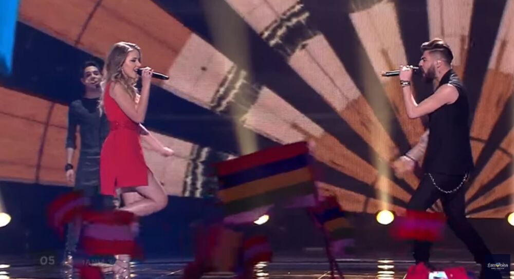 21:27 - Peta po redu nastupa Rumunija. Ilinca ft. Alex Florea i pesma Yodel It!