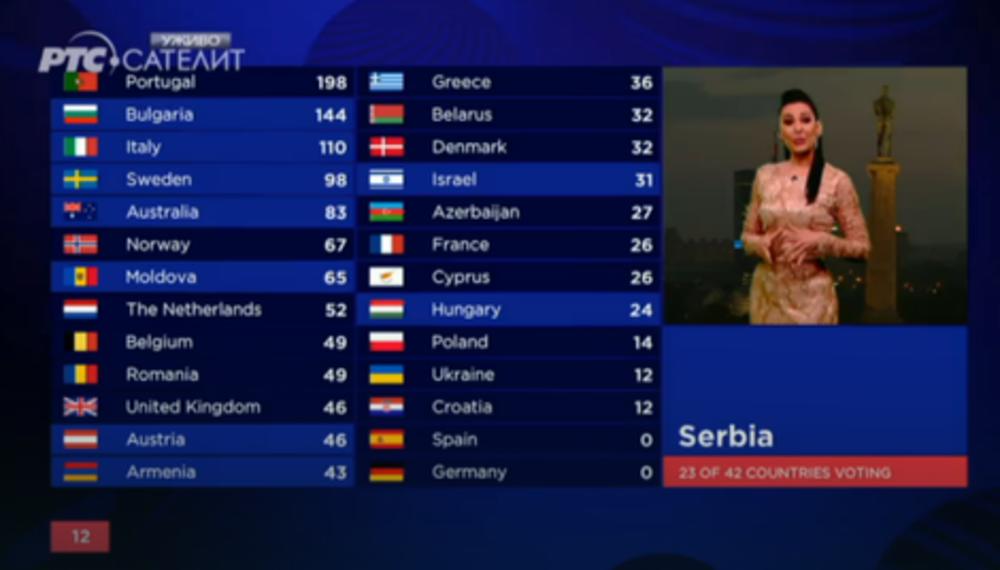 00: 34 - Moldavija je sada na drugom mestu. Na prvom mestu i dalje je Portugal!