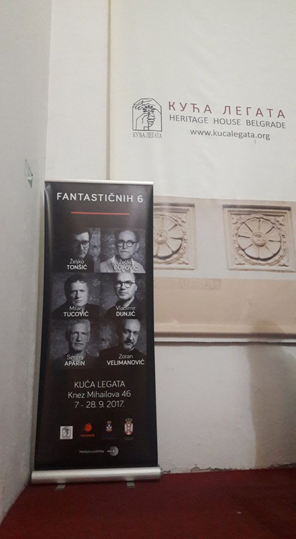 U četvrtak uveče, u 19 časova, u Kući legata u Knez Mihailovoj ulici otvorena je izložba ,,Fantastičnih šest“. Kuća legata, u kojoj se održava izložba, je institucija osnovana 2004. godine od strane Skupštine grada Beograda , a nastala je kao plod višedecenijske inicijative umetnika, intelektualaca, stručnjaka i darodavaca.