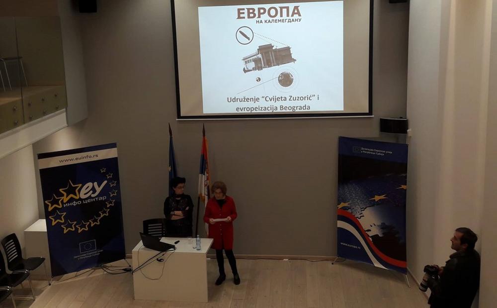Predavanje ,,Udruženje Cvijeta Zuzorić i evropeizacija Beograda“ okviru ciklusa ,,Srbija i Evropa kroz vekove“, održano je u četvrtak 2. novembra, u prostorijama EU info centra. Predavanje je održala dr Radina Vučetić, profesorka beogradskog Filozofskog fakulteta na Odeljenju za savermenu istoriju.