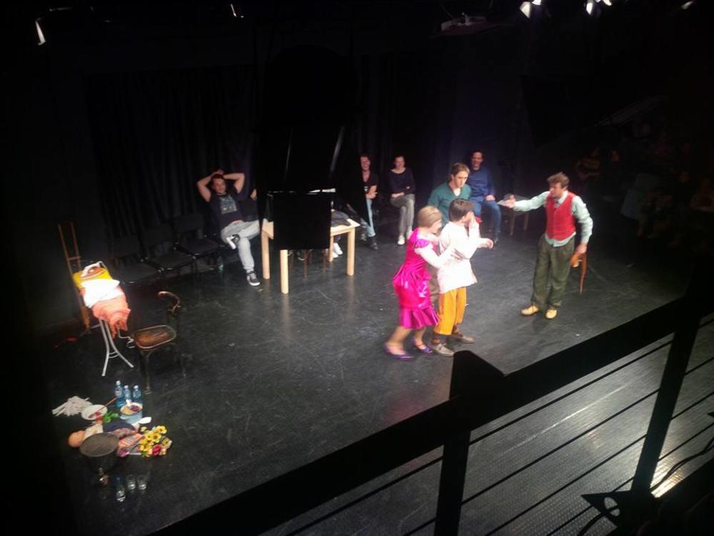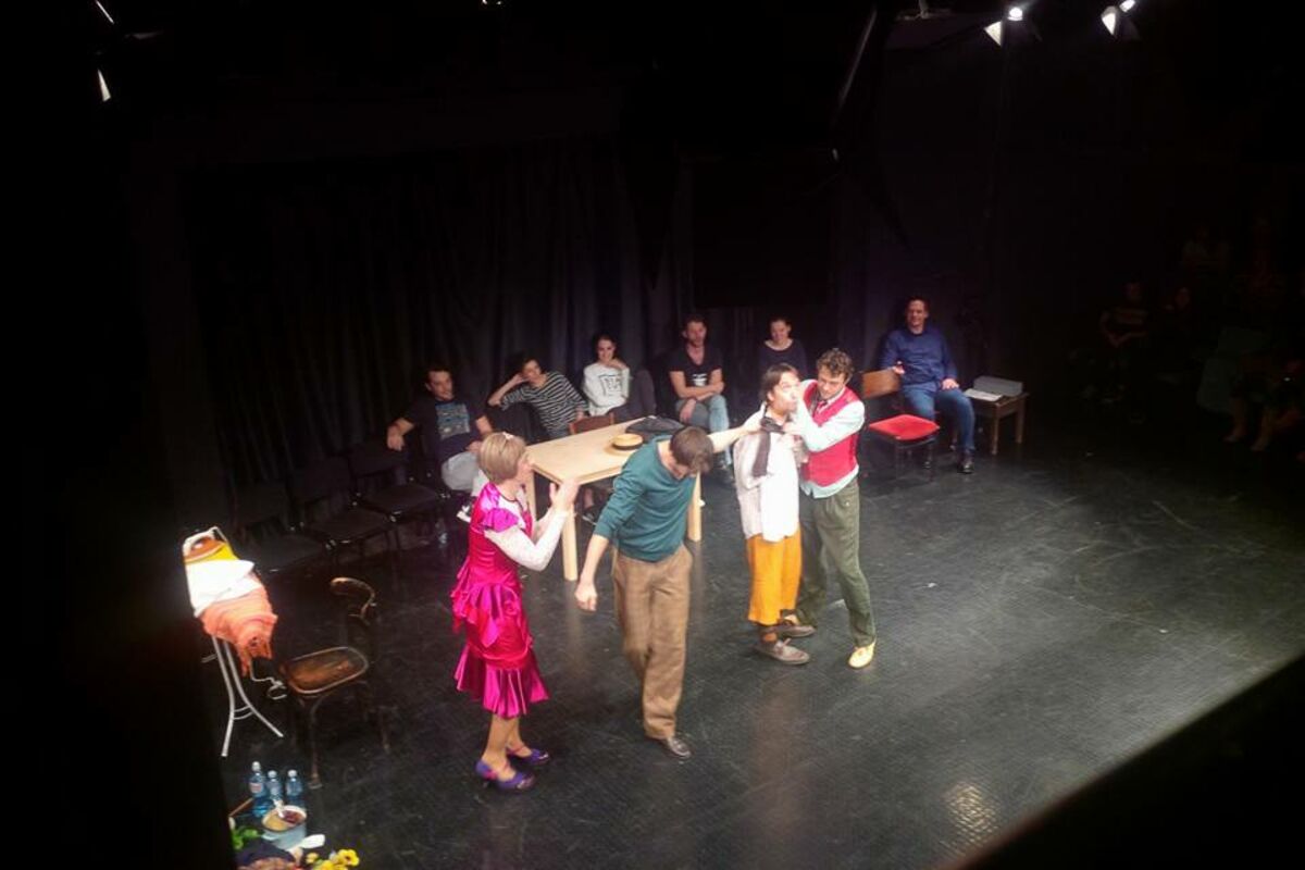 U pauzi predstave "Gospođa ministarka", ekipa glumaca "uletela" je na predstavu "Ne oklevaj-improvizuj" koja se igrala na sceni "Kult", UK Vuk Karadžić.
