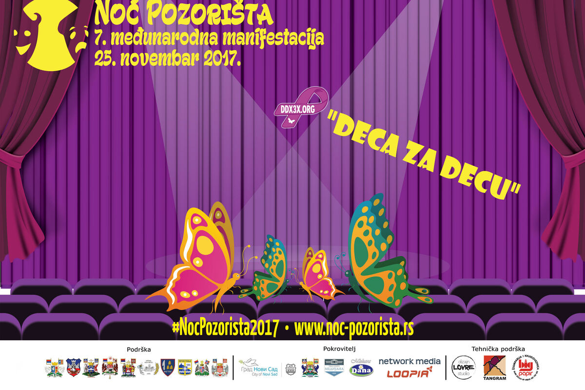 U subotu 25. novembra 2017. godine, po sedmi put će se održati međunarodna manifestacija NOĆ POZORIŠTA u Republici Srbiji, u okviru međunarodne mreže European theatre night. Preko 50 različitih programskih sadržaja biće održano u sledećim gradovima: Bačka Palanka, Beograd, Čukarica, Vrbas, Kragujevac, Niš, Novi Sad, Futog, Mladenovac, Prokuplje i Novi Bečej.