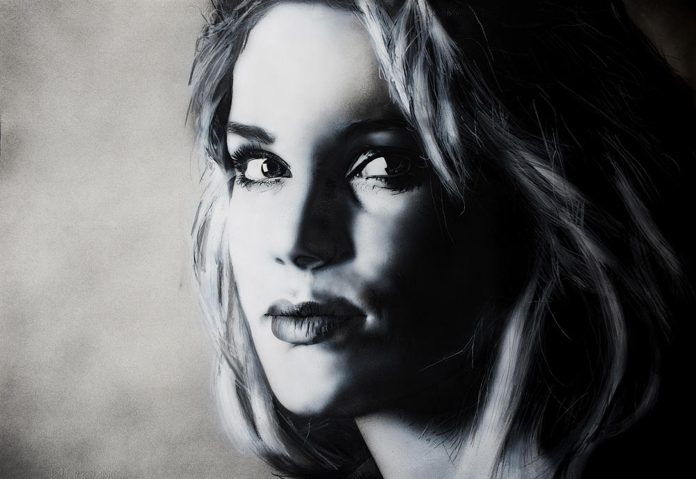 Autorka ovaj put ima svedeniji pristup: crno-bele slike sa krupnim kadrom na lice, rađene „airbrush“ tehnikom na najfinijem, pamučnom akvarel papiru.
