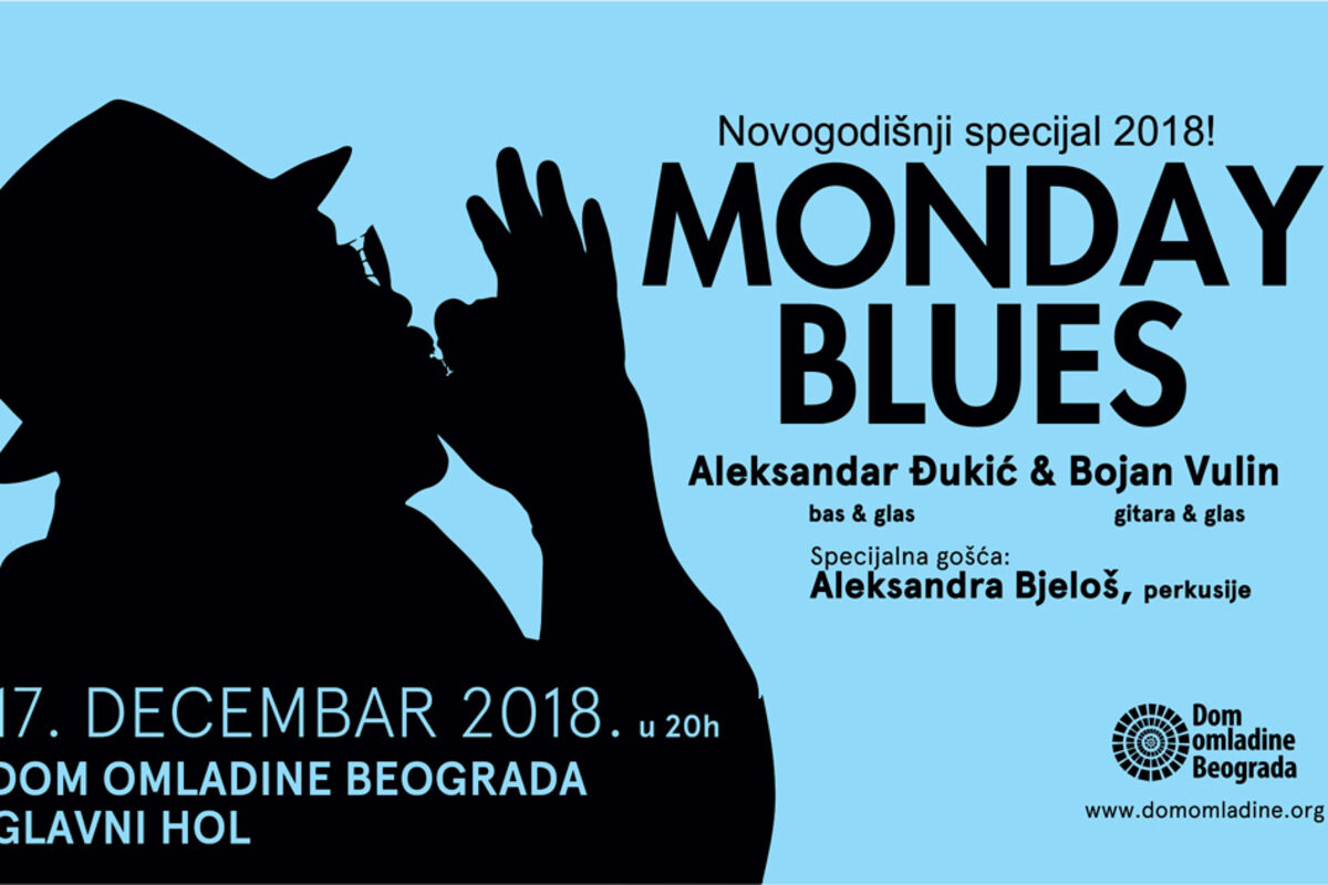 Dom omladine Beograda nastavlja serijal besplatnih low-noise bluz koncerata trećim ciklusom Monday Blues! Ovoga puta u pitanju je novogodišnji specijal ponedeljkom tokom decembra 2018. od 20 časova u Glavnom holu Doma omladine.