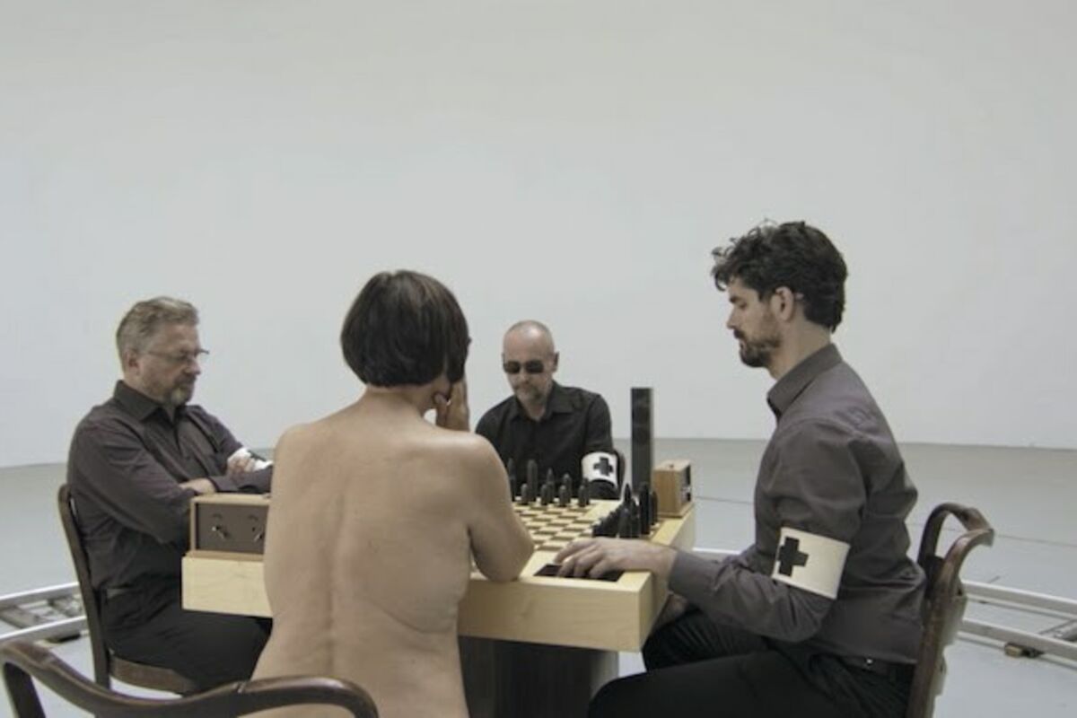 Evo kako izgleda interpretacija benda Laibach. Kratak film referira na fotografiju "Dišan igra šah sa golom (Evom Babic)", a u njemu se pojavljuje hrvatski performans umetnik Vlasta Delimar.