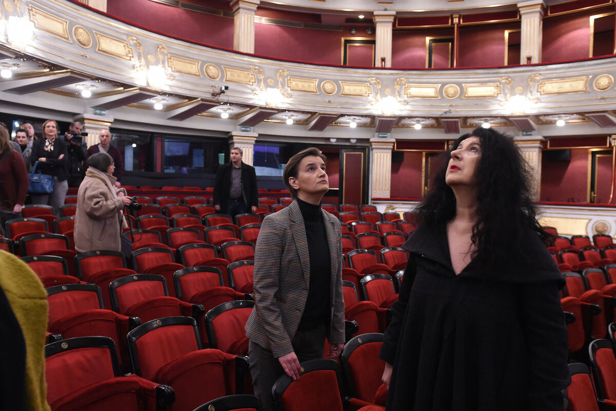 “Moj posao je da se bavim problemima i da ih rešavam kako bi svima nama u svim aspektima života sutra bilo bolje nego što je danas. Ja verujem u promene, a ova zgrada prekoputa (rekonstruisani Narodni muzej) je jedan od velikih dokaza da su promene u kulturi moguće”, kazala je Ana Brnabić, koja je obišla Narodno pozorište u društvu v.d. upravnice Ivane Vujić, imenovane nakon smene upravnika Dejana Savića krajem novembra.
