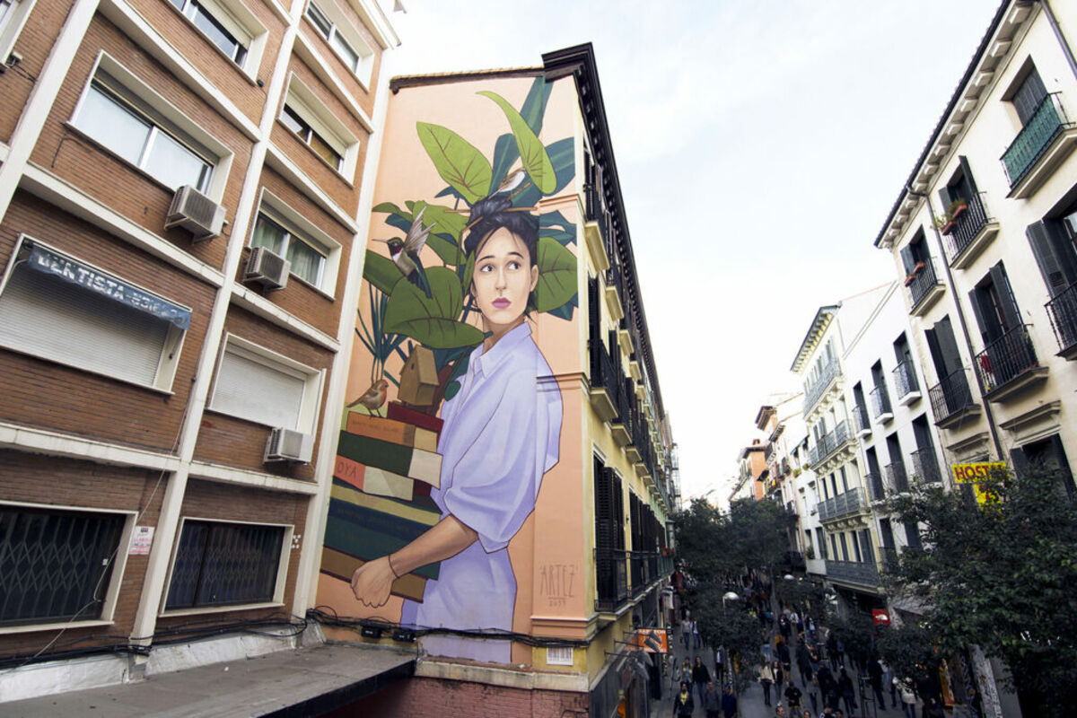 Elementi na muralu su prepoznatljivi, moglo bi se već reći „artezovski“: nežni ženski lik, sobne biljke, kućica za ptice, knjige… Ovog puta oni predstavljaju poziv putnicima da dođu u Madrid. U zvaničnom opisu murala Artez nam objašnjava: