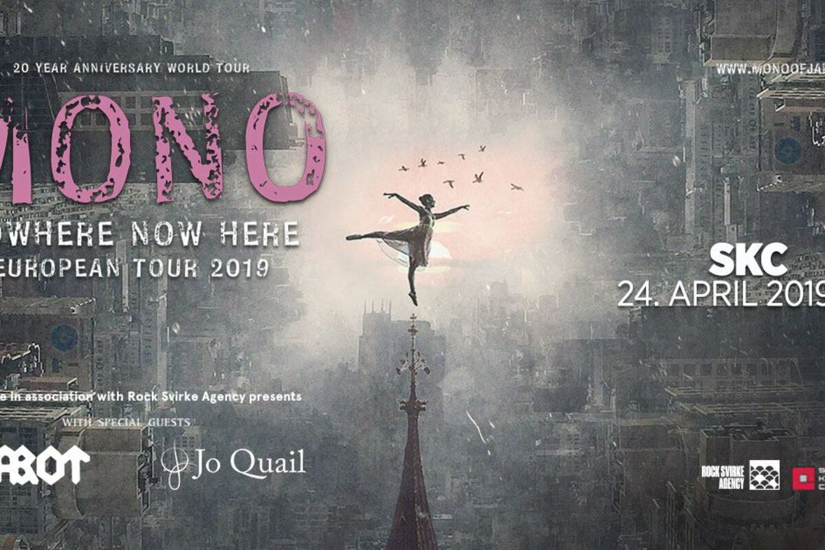 Nakon prošlogodišnjeg nastupa na Meltdown festivalu u Londonu, odazvavši se na specijalan poziv Roberta Smita (The Cure) gde su nastupali sa bendovima kao što su My Bloody Valentine, Nine Inch Nails, Mogwai i Deftones, bend MONO (Japan) koji po rečima muzičkog časopisa "New Musical Express" (NME), stvara "muziiu za Bogove" održaće svoj četvrti koncert u Srbiji u sredu, 24. aprila 2019. godine u Studentskom kulturnom centru (SKC) u Beogradu sa početkom u 19 časova uz podršku grupa Arabrot Official iz Norveške i čelistkinje Jo Quail iz Velike Britanije. MONO je četvoročlani instrumentalni sastav oformljen 1999. godine u Tokiju. Njihov jedinstveni pristup kombinovanju dirljivo orkestriranih aranžmana i šugejz gitarske buke smatra se veoma zadivljujućim, toliko da njihov muzički izraz praćen raznovrsnom zvučnom paletom nadilazi rok žanr i obitava u okviru sopstvenog kraljevstva. Jednom prilikom ih je britanski muzički magazin NME okarakterisao kao „ovo je muzika za Bogove“.