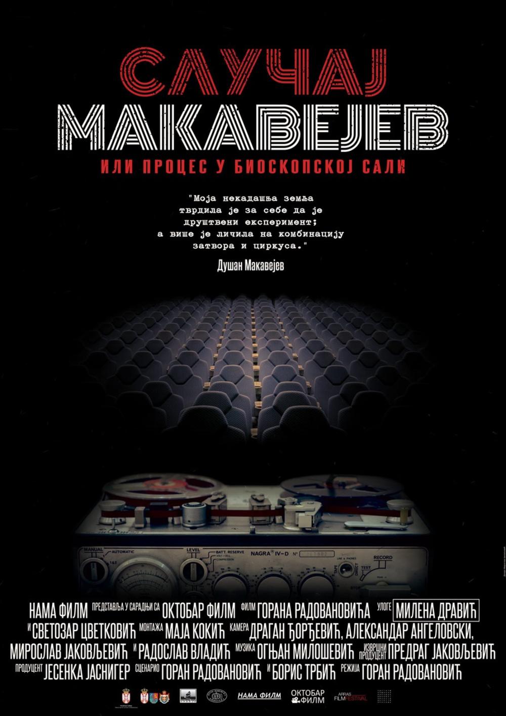 Film „Slučaj Makavejev ili proces u bioskopskoj sali“ prikazan je premijerno 25. februara ove godine na 47. FEST-u, i tom prilikom osvojio dve nagrade: Beogradskog pobednika (kao najbolji film u programu „Srpski film -Srbija i prijatelji“) i Nagradu „Milutin Čolić“. „Slučaj Makavejev“ je nastao po scenariju Gorana Radovanovića (koji je film i režirao) i Borisa Trbića. Film su snimili Dragan Đorđević, Aleksandar Angelovski, Miroslav Jakovljević i Radoslav Vladić, a montirala ga je Maja Kokić. Muziku potpisuje Ognjan Milošević. „Slučaj Makavejev“ je nastao produkciji kuća Nama film i Oktobar film, a uz podršku Filmskog centra Srbije. Oktobar film je zadužen i za bioskopsku distribuciju. Izvršni producent je Predrag Jakovljević, a producentkinja Jesenka Jasniger.