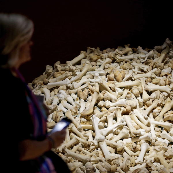 Na podu su posude sa vodom, a u uglu goveđe kosti kao reminiscencija na rad u kojem slavna umetnica riba sveže goveđe kosti, pevajući neprekidno narodne pesme koje su bile aktuelne u njenom detinjstvu.