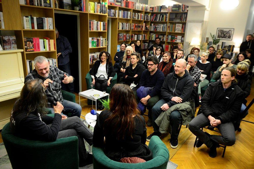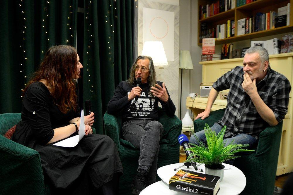 "Ja nisam pjesnik, nisam pisac, nisam čak muzičar niti kompozitor. Ja sam naprosto radnik," predstavio se preksinoć Sale Veruda voditeljima i publici na razgovoru u sklopu programa "Pula (ni)je punk" koji su u Klubu & knjižari Giardini 2 osmislili i vodili knjižarka Vlatka Balinčić i etnomuzikolog Dario Marušić. Autor: Mladen Radić / Glas Istre