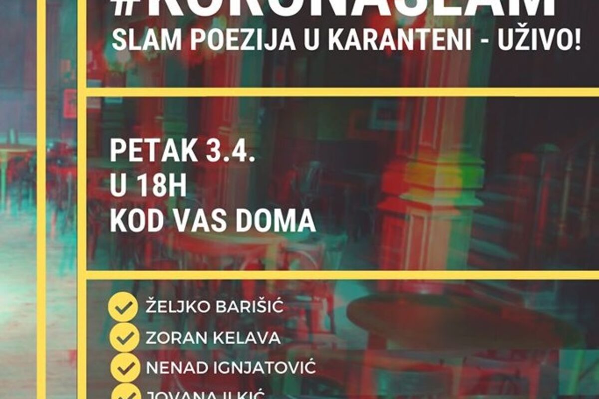 KORONASLAM #2 u petak 3.4. - regionalni online most slam pesnika koji čitaju svoju poeziju od kuće