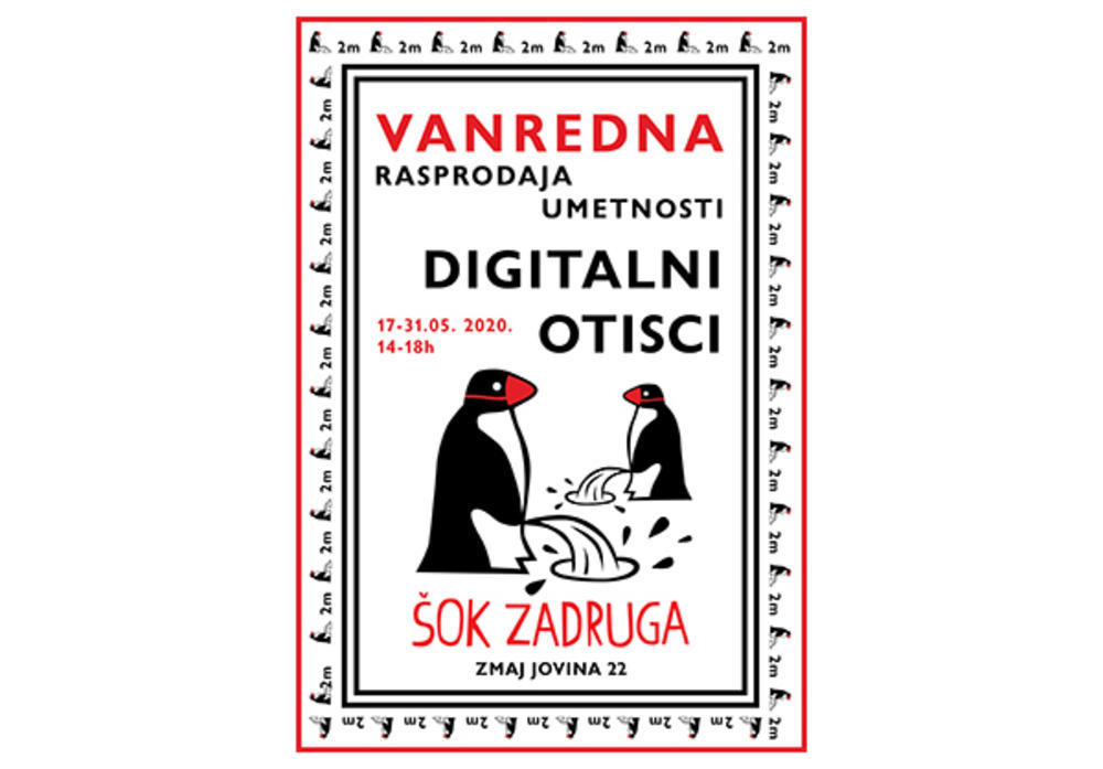 Šok zadruga, usled posledica koje je prouzrokovala pandemija korona virusa, organizuje Vanrednu rasprodaju umetnosti od 17. do 31. maja, u cilju podrške lokalnoj umetničkoj sceni i sopstvenim galerijskim aktivnostima.