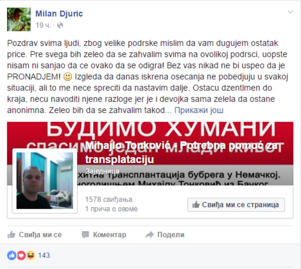 Ispod teksta je ulinkovao stranicu na kojoj humani ljudi mogu pomoći bolesnom Mihajlu, kome je hitno potrebna transplatacija bubrega.