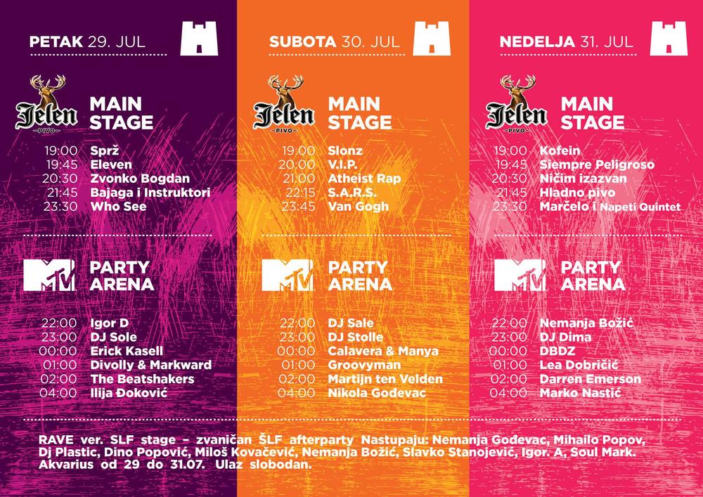 Bajaga i Instruktori, Van Gogh, Daren Emerson, Hladno pivo, S.A.R.S., Zvonko Bogdan, Atheist Rap, Who See, Marko Nastić i još mnoga imena regionalne muzičke scene smenjivaće se na Jelen Main Stage-u i MTV Party Areni.