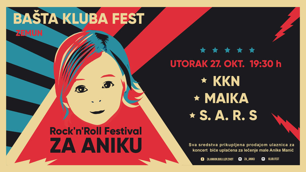 U utorak (27.10), sredu (28.10), četvrtak (29.10) i petak (30.10) u klubu Fest, u Zemunu, sa početkom u 19:30 časova najveće zvezde rock scene će svirati u humanitarne svrhe, za Aniku Manić. Sav prihod od prodaje karata i prodaje pića će biti doniran za gensku terapiju koja će Aniki omogućiti da diše, ima detinjstvo i živi lep i dug život.