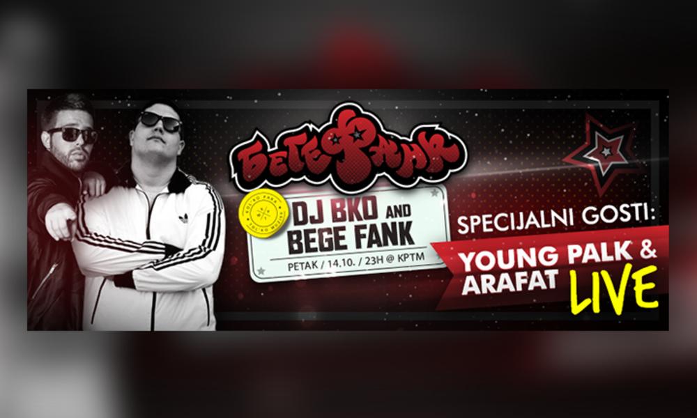 Domaćini Bege Fank i DJ BKO ovoga puta ugostiće dva prekaljena em-sija na ekskluzivnom party nastupu, a to su Young Palk (Zvezde Grajma) i Arafat (Black Ring Crew).