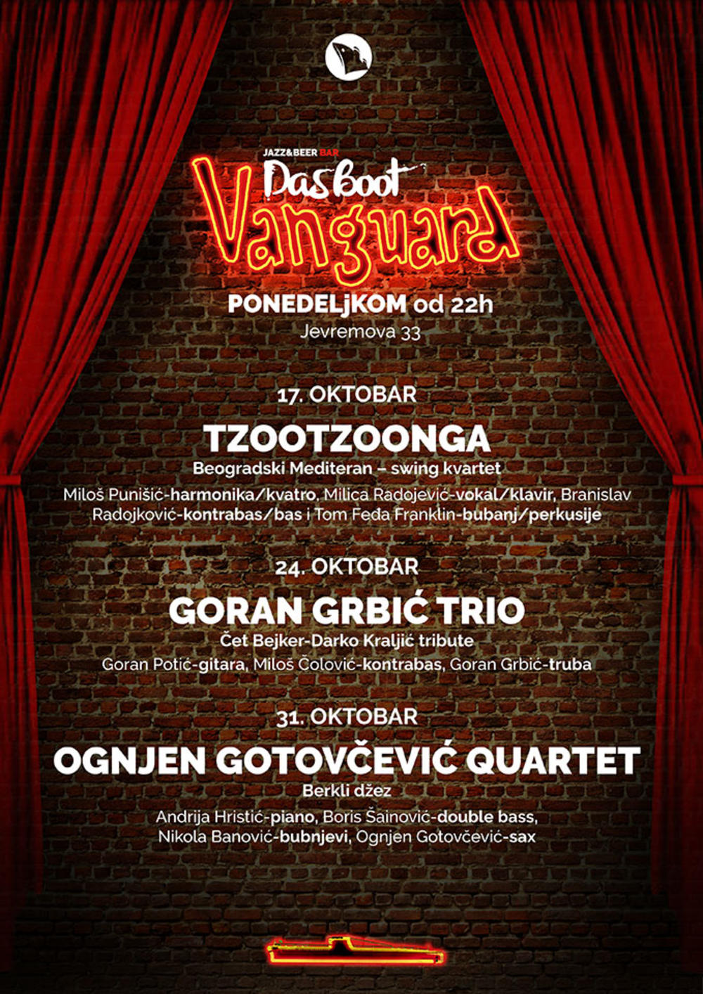 Ulaz je slobodan, program počinje od 22h, već od ovog ponedeljka 17. oktobra navedenim redosledom…Ko nije ili i ko jeste bio u Njujorku, nek pronađe podudarnost našeg prostora i Vanguard kulta.