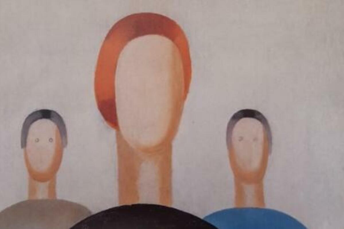 Avangardna slika prikazuje tri apstraktne, figure bez očiju.
