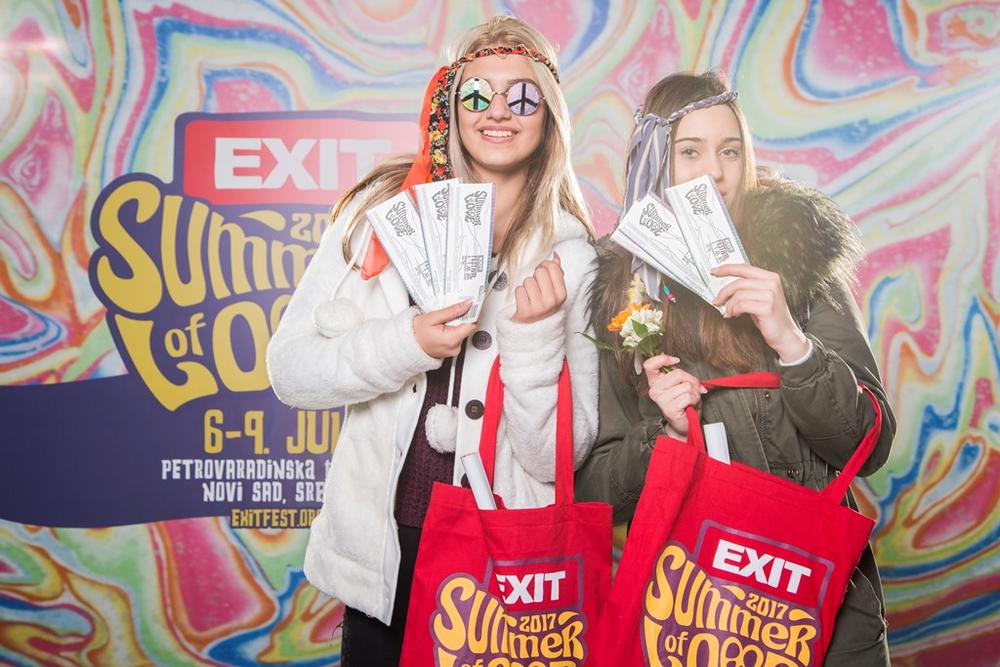 Najbrži fanovi, koji su čekali u redu već od 8 časova, dobili su na poklon prve EXIT Summer of Love 2017 majice, cegere, bedževe, postere i EXIT magične kartice, a ostvarili su i pravo na poklon cenu ulaznice za EXIT sa uštedom od čak 65%! Najpovoljnije ulaznice po poklon ceni od 5.990 dinara već su rasprodate i trenutno se u prodaji nalazi ograničen broj ulaznica po novoj promotivnoj ceni od 6.490 dinara, sa 60% popusta u odnosu na finalnu cenu za EXIT festival. Ulaznice se prodaju putem sajta www.exitfest.org, te putem prodajne mreže Gigs Tix, na blagajnama širom Srbije čiji se spisak nalazi na ovom linku.