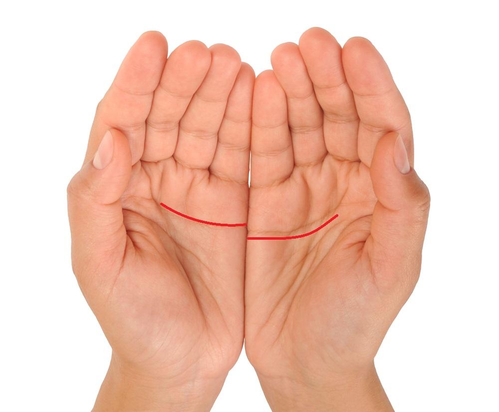 3. Linija na levom dlanu je iznad linije na desnom dlanu