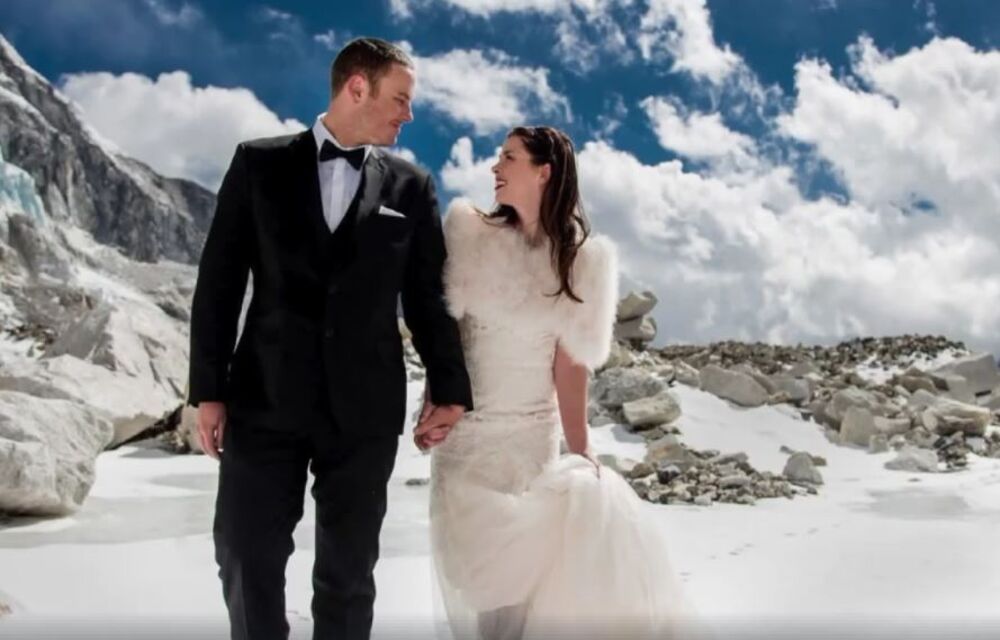Džejms Sizom (35) i Ešli Šmajder (32) iz SAD peli su se tri nedelje kako bi došli do baznog kampa na Mont Everestu na 5. 180 metara nadmorske visine. Ni velika hladnoća, ni probijanje kroz sneg, ni strah od visine nisu im smetali jer su pred sobom imali nesvakidašnji cilj - venčanje na Mont Everestu.