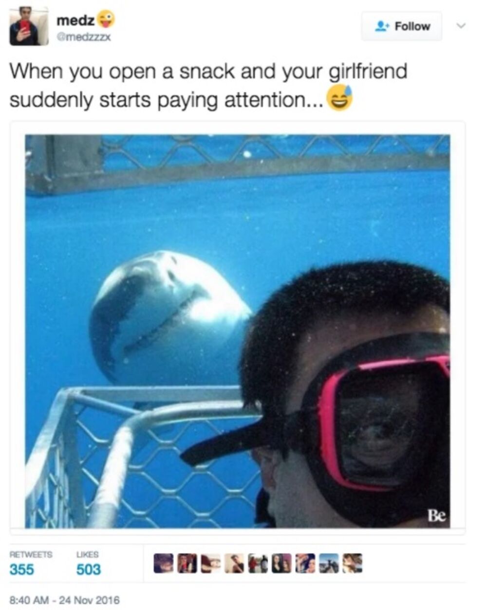 21. Kad otvoriš kesicu grickalica, a tvoja devojka odjednom poče da obraća pažnju