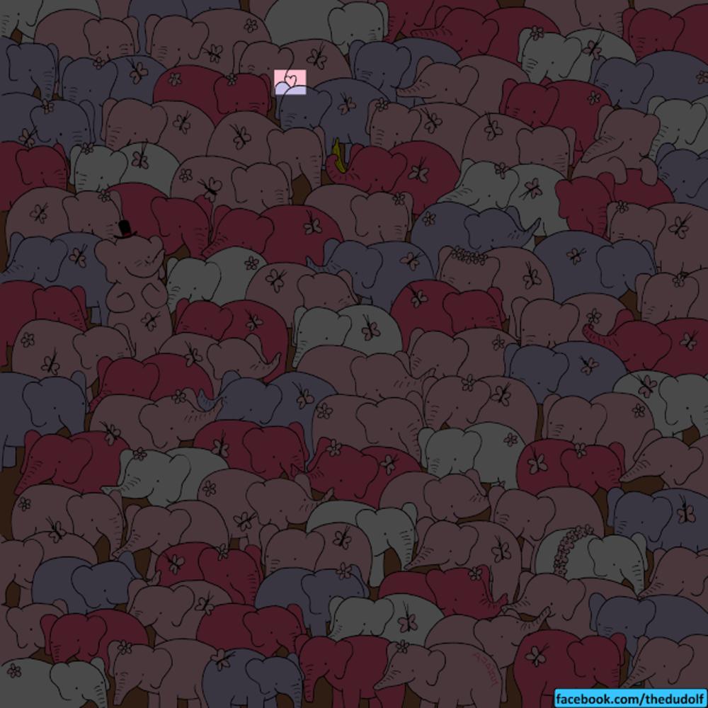 Talentovani umetnik osvaja još jednom svojom neodoljivom mozgalicom. Ovoga puta zadatak je pronaći roze srce među preslatkim rozim, belim i ljubičastim slonićima.