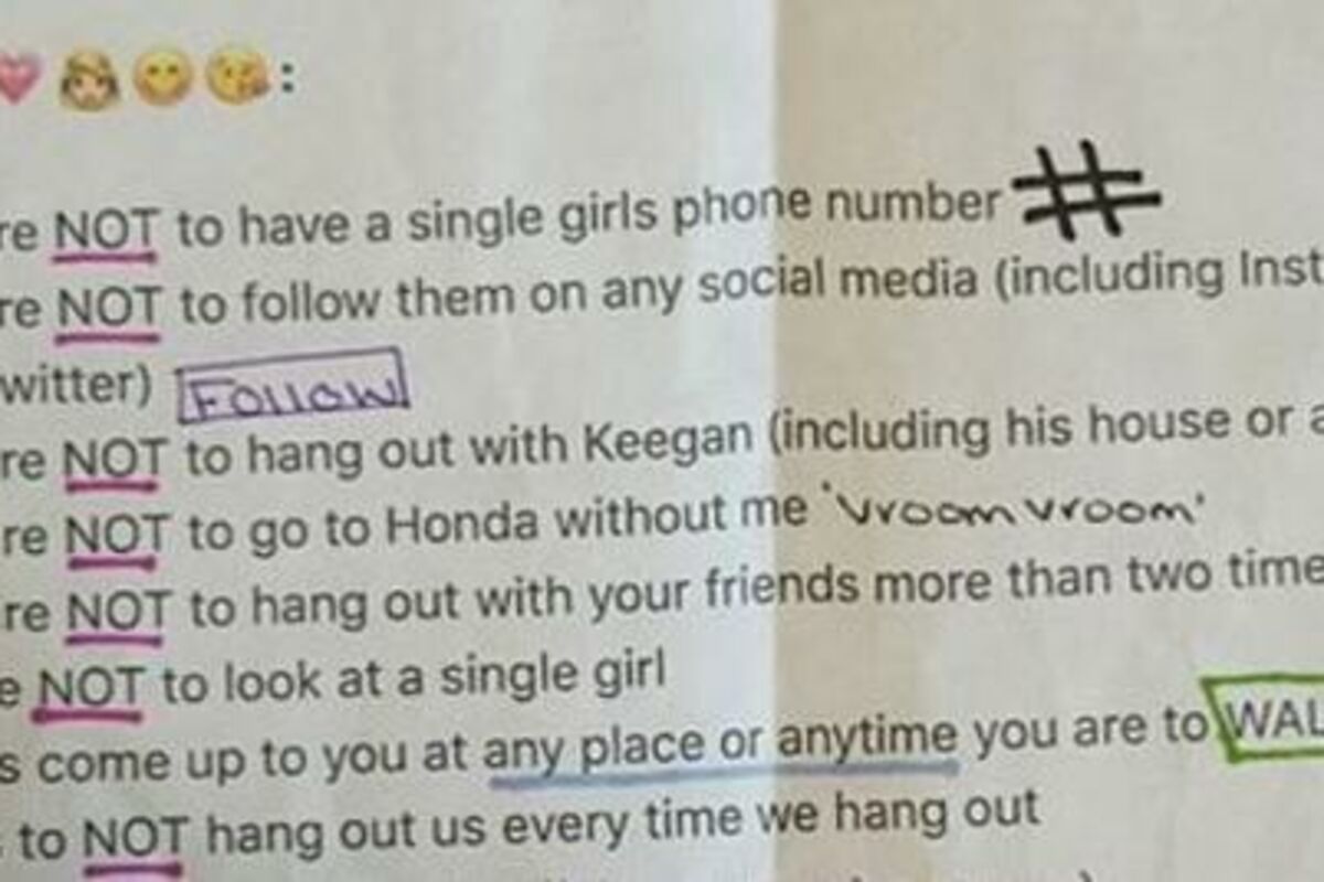 Devojka je tako dečku zabranila da u telefonu ima brojeve slobodnih devojaka ili da ih prati na društvenim mrežama. Mladiću je tako ograničila druženje s prijateljima na dva puta nedeljno kao i konzumiranje alkohola kada nije s njom.