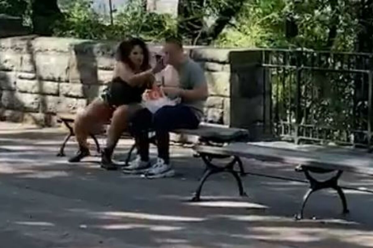 Urnebesna scena snimljena je u jednom parku, a glavni akteri su mladić i devojka koji su, nagađa se, u vezi.