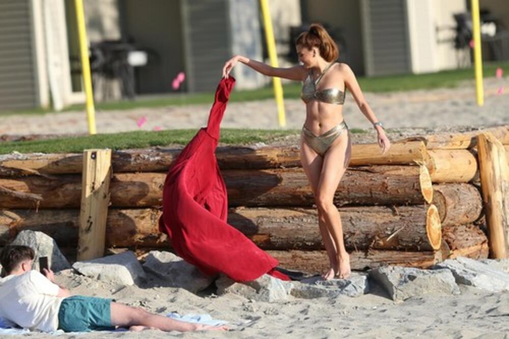 Naime, atraktivna brineta je obukla svetlucavi bikini i jasno joj je bilo da je fotoreporteri prate u stopu, te je iskoristila priliku i da im pozira.