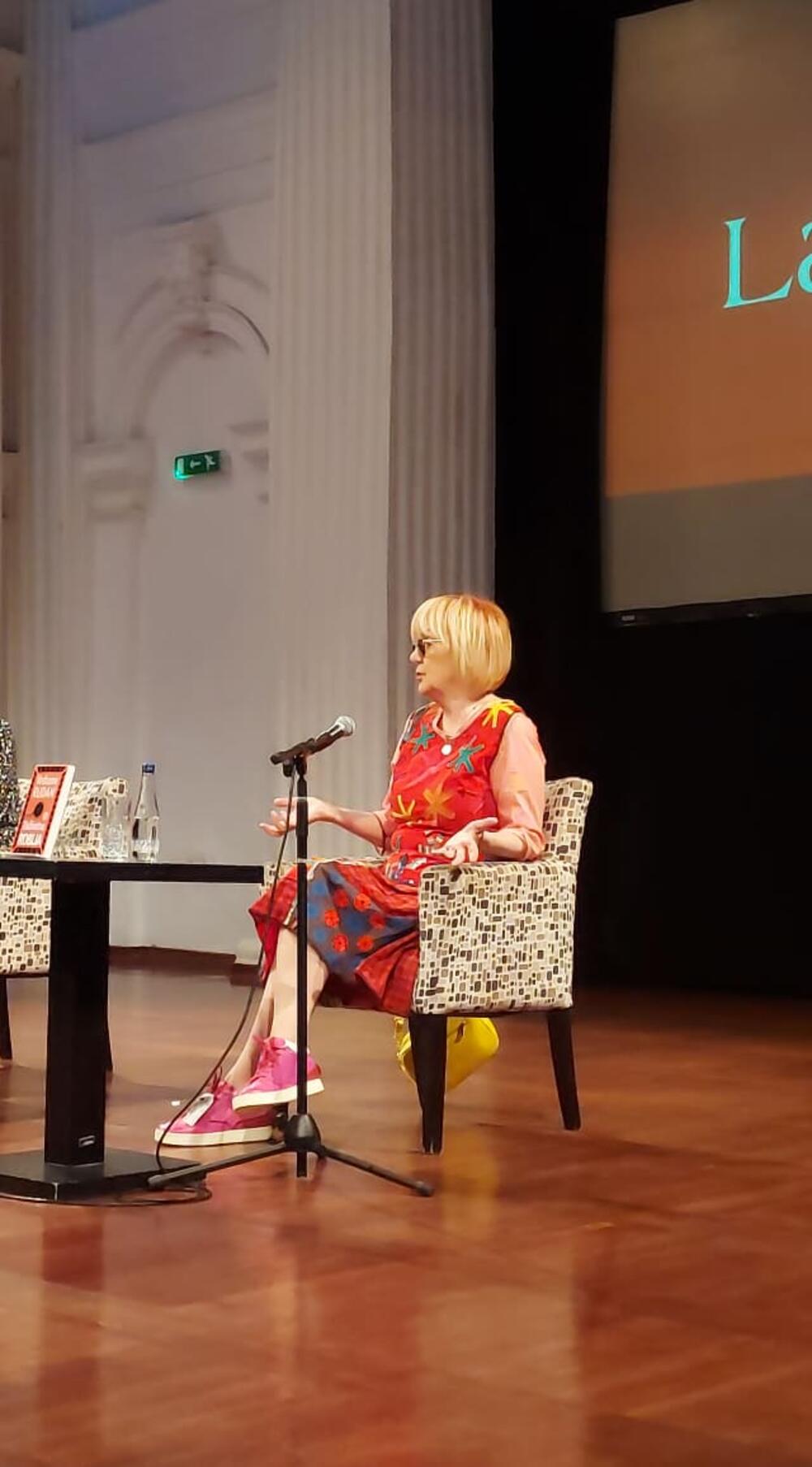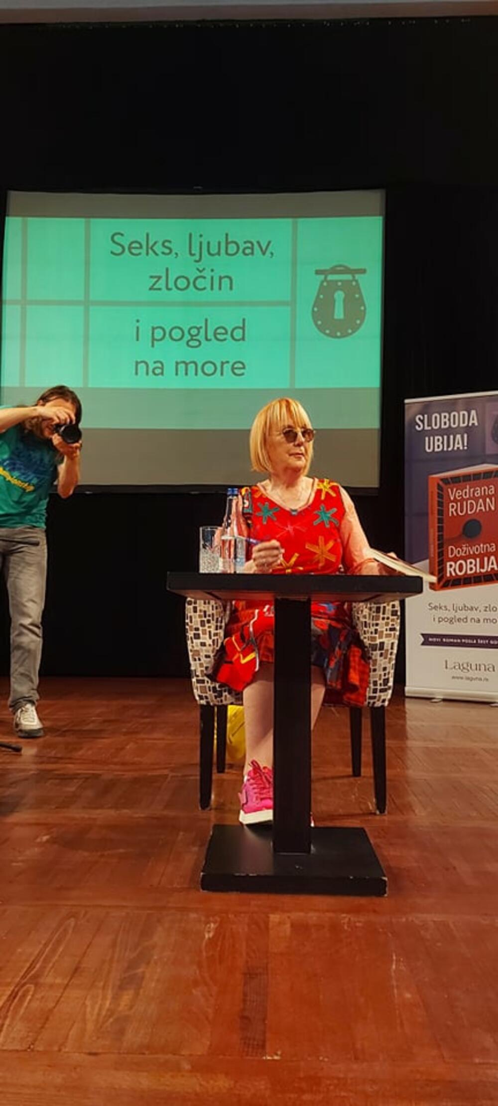 Može se primetiti da je Vedrana Rudan je na promociju knjige došla u kežual izdanju, koje joj savršeno stoji.