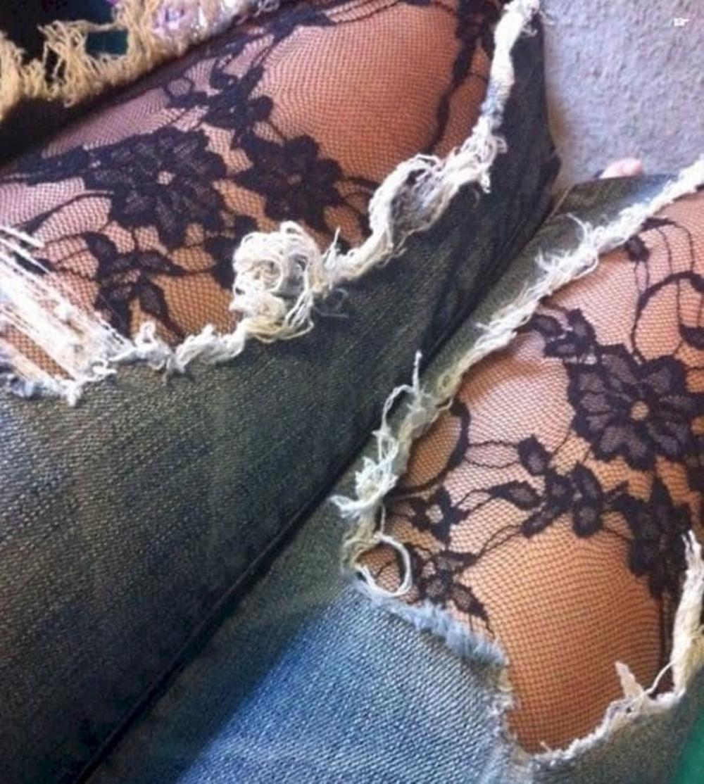 Nošenjem neobičnih hulahopki ispod pocepanih farmerki učinićete ih atraktivnijim, ako ne volite hulahopke možete na rupe prišiti čipku.