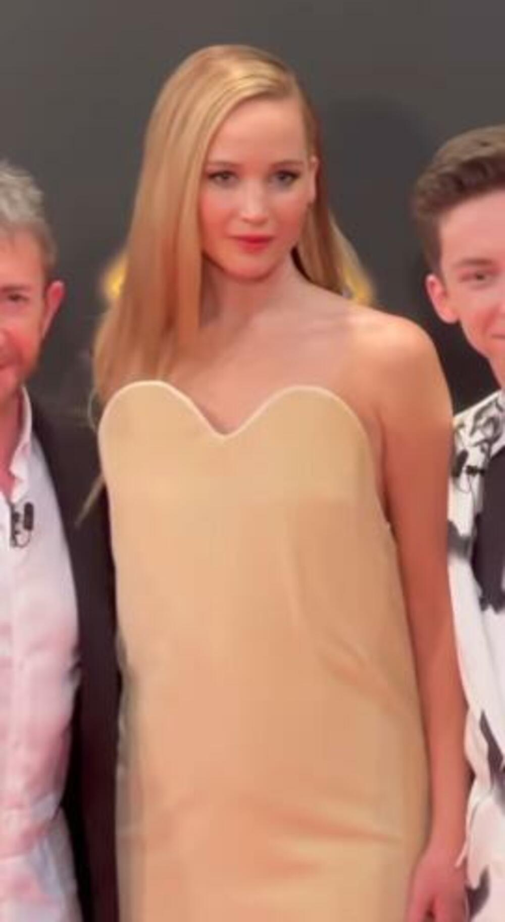 Dženifer Lorens se na premijeri pojavila u haljini brenda "Loewe". Hljina je u boji kože i vizuelno je odnojena od njenog tela.