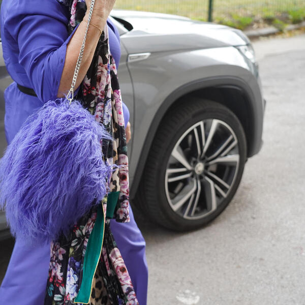 Na jednom snimanju Ana se pojavila od glave do pete u stajlingu boje lavande, a najviše pažnje privukla je čupava torba poznatog mađarskog brenda Nina Molnar čija je cena 300 evra