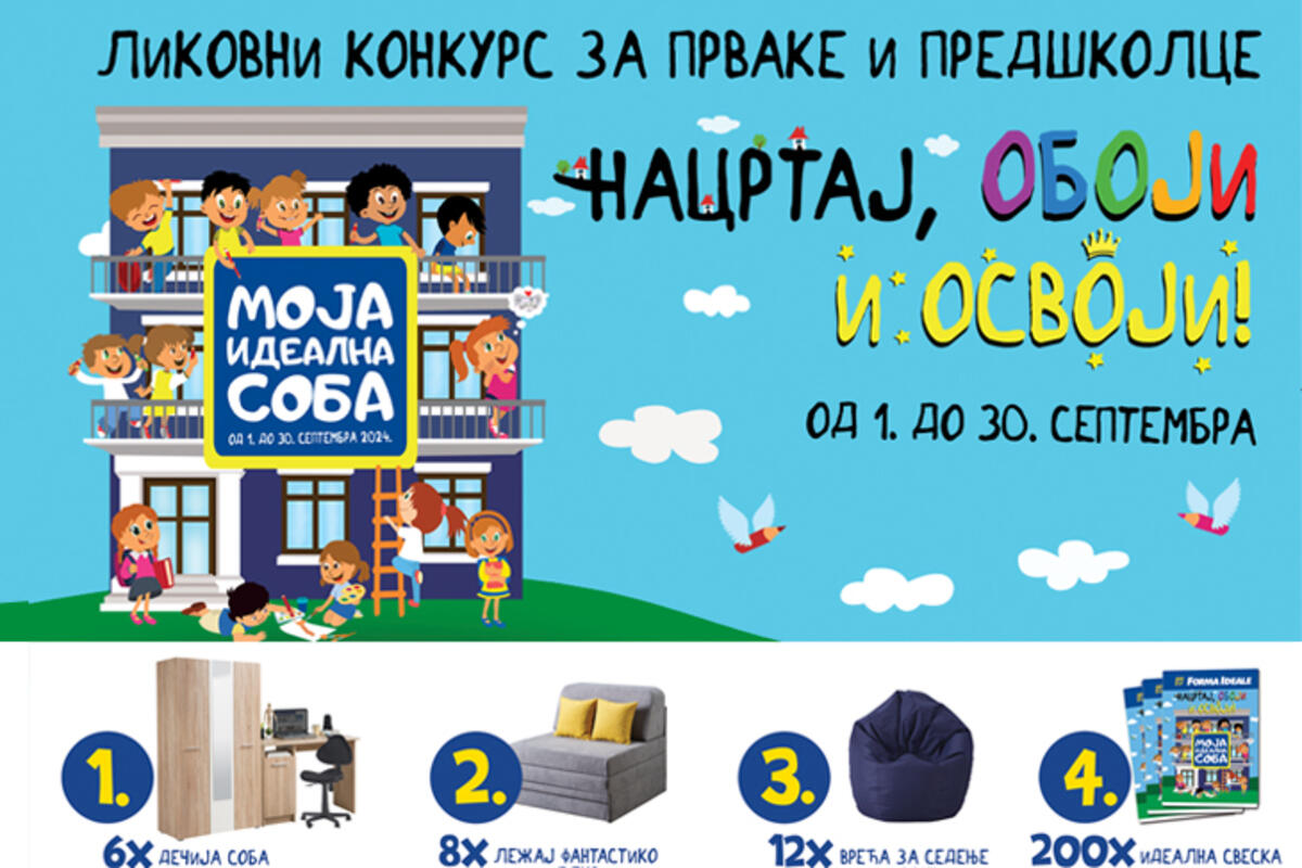 Predškolci i prvaci iz cele Srbije imaće priliku i ove godine da učestvuju na tradicionalnom 13. dečijem konkursu kompanije Forma Ideale, pod nazivom „Nacrtaj, oboji i osvoji!“.