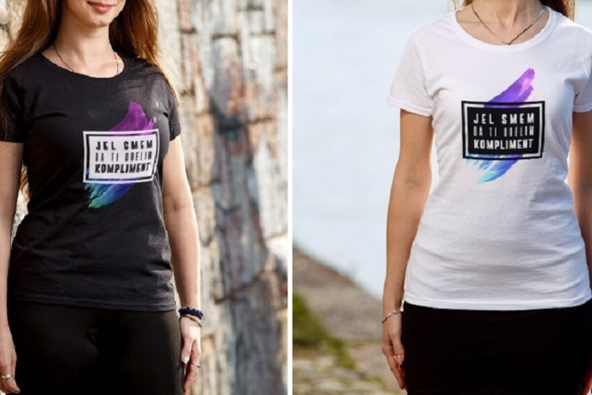 U pitanju su majice sa natpisom “Je l’ smem da ti udelim kompliment?”