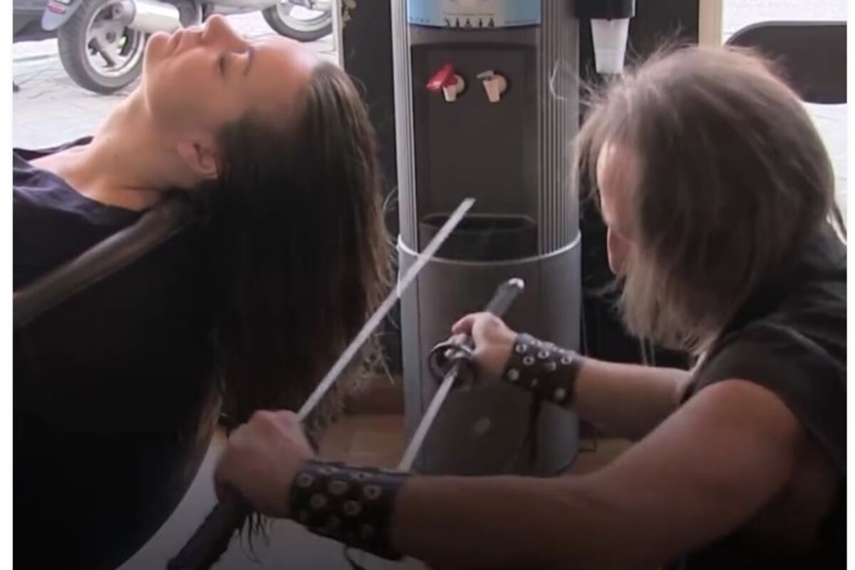 Cutting Hair with SwordsDitch the scissors and get your hair cut with swords by the real-life Edward Scissorhands.